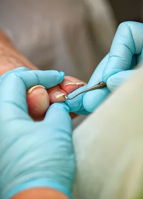 Ausgelöst durch den Diabetes kommt es durch Zerstörung und/oder Ablagerungen zu Nervenstörungen und/oder Durchblutungsstörungen an den Füßen. Patienten mit Nervenstörungen (Neuropathie) und/oder Durchblutungsstörungen (Angiopathie) haben u.a. meistens auch eine eingeschränkte Schweißbildung an den Füßen. Dies führt dazu, dass die Haut rissiger und trockener wird. Dadurch kommt es häufiger zu Verletzungen als bei Nicht-Diabetikern. Zudem ist das Schmerz- und Druckempfinden eingeschränkt. Durch Fehlbelastung entstehen Druckstellen und Hornhaut. Patienten mit langjährigem Diabetes haben zudem sehr oft, bedingt durch eine Minderdurchblutung, Wundheilungsstörungen. In Kombination mit den Nervenschädigungen, und das damit verbundene Missempfinden, hat der diabetische Fuß ein komplexes Krankheitsbild mit zum Teil schwierigen und langwierigen Behandlungsphasen.